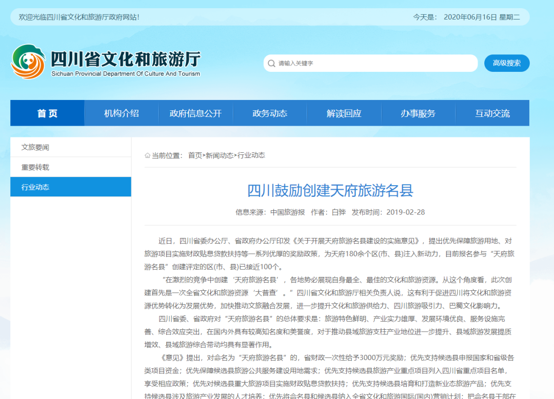 2019年2月22日,四川省文化和旅游廳召開(kāi)新聞通氣會(huì),對(duì)省委辦公廳、省政府辦公廳印發(fā)的《關(guān)于開(kāi)展天府旅游名縣建設(shè)的實(shí)施意見(jiàn)》(以下簡(jiǎn)稱《意見(jiàn)》)進(jìn)行通報(bào)并解讀。