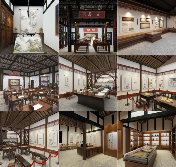 展廳運用古樸的色彩,按照“修舊如舊”的規(guī)劃設(shè)計原則,充分尊重書院歷史文化,充分展示書院文化內(nèi)容與文化魅力,傳播與傳承優(yōu)秀文化,加強了空間感和濃郁的傳統(tǒng)文化氣息。