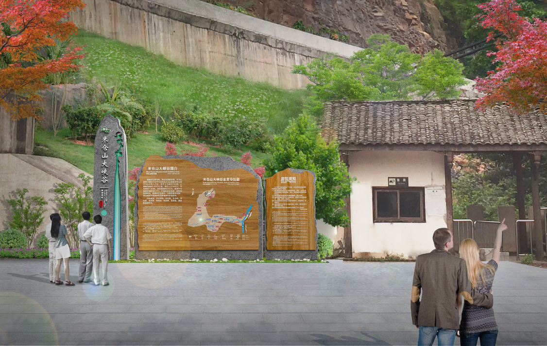 設計范圍:景區(qū)大門景觀、廣場維修改造、綠化部分、棧道部分。