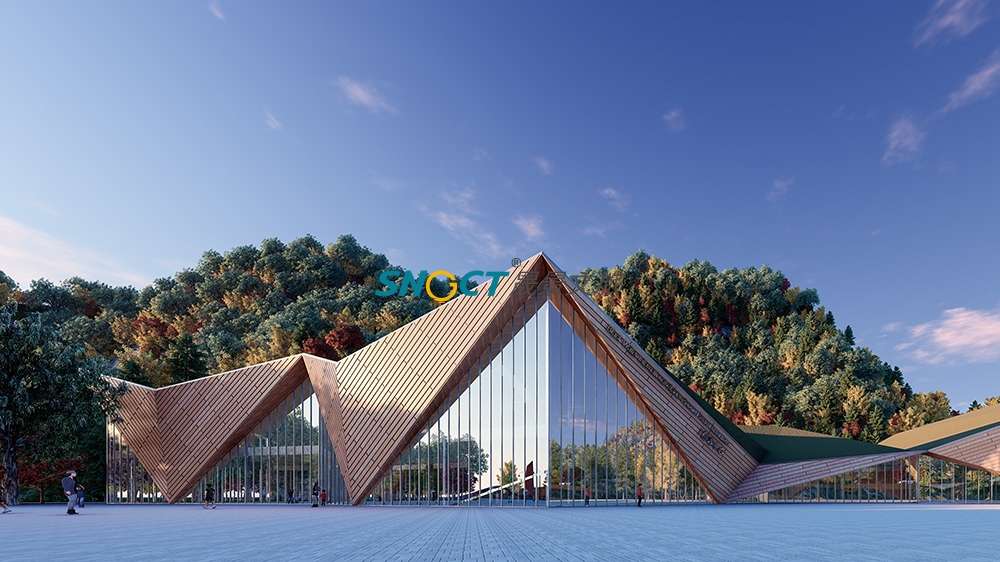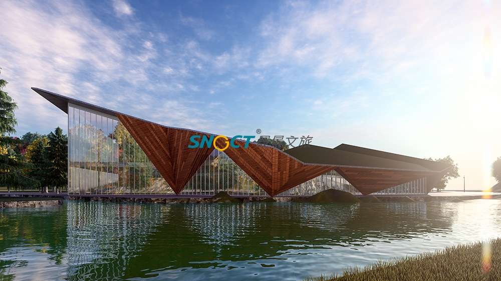 本項(xiàng)目建筑面積約2500平方米。方案設(shè)計(jì)上提取奶子溝“彩林、冰山、河川、生態(tài)”的印象標(biāo)簽,以“融合”為核心,將其貫穿起來(lái),形成了“水為形,山為勢(shì),山川一體”的設(shè)計(jì)概念,對(duì)標(biāo)國(guó)際冰川彩林旅游度假目的地的設(shè)計(jì)要求。
