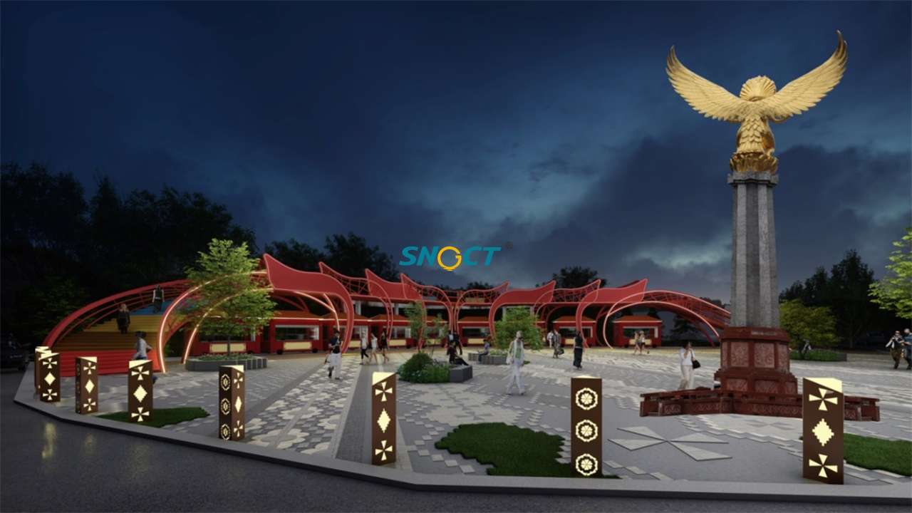 設(shè)計(jì)思路:設(shè)計(jì)以馬爾康嘉絨驛站“嘉絨圣地、夢(mèng)之凈土”為指導(dǎo)理念,通過(guò)對(duì)當(dāng)?shù)乇就廖幕M(jìn)行分析,提取出藍(lán)色、金翅、土地、紋飾幾個(gè)元素對(duì)應(yīng)的顏色,在不影響銷售區(qū)的采光和結(jié)構(gòu)完整性的基礎(chǔ)上,對(duì)觀景平臺(tái)進(jìn)行整體化設(shè)計(jì)。并結(jié)合馬爾康的好山好水好景特色,設(shè)置天空之境打卡點(diǎn)。